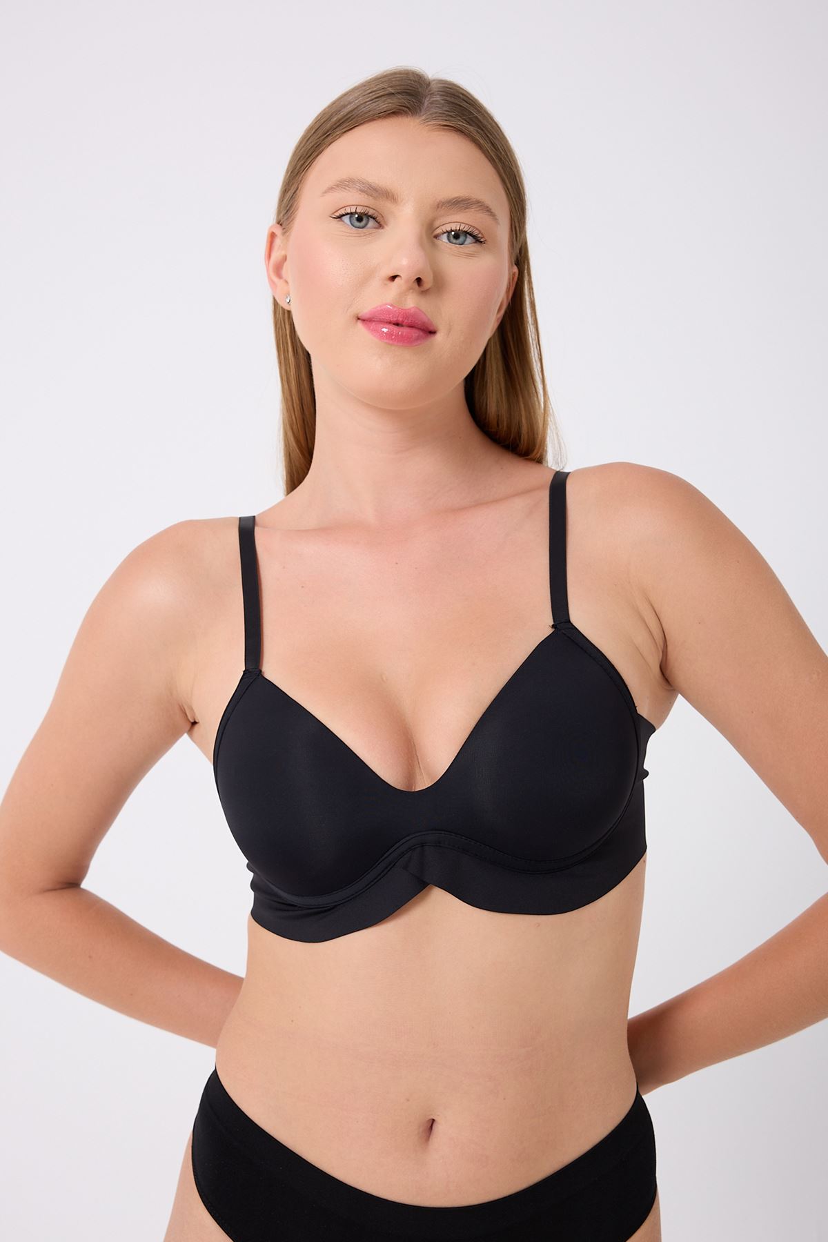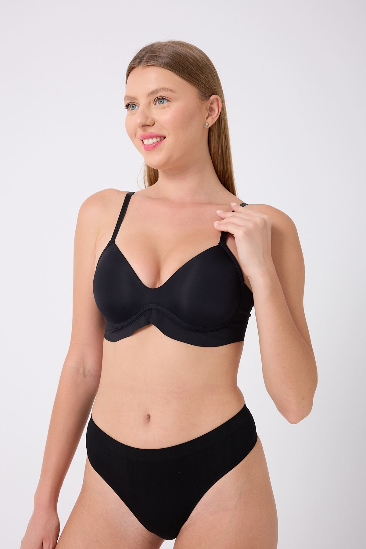 dikişsiz sütyen, gün boyu maksimum konfor ve doğal bir görünüm sunmak için tasarlanmıştır. Balenli yapısı göğüsleri nazikçe desteklerken, yumuşak ve esnek kumaşı vücuda mükemmel uyum sağlar. Dikişsiz formu sayesinde kıyafetlerin altında iz yapmadan pürüzsüz bir görünüm elde edilir.