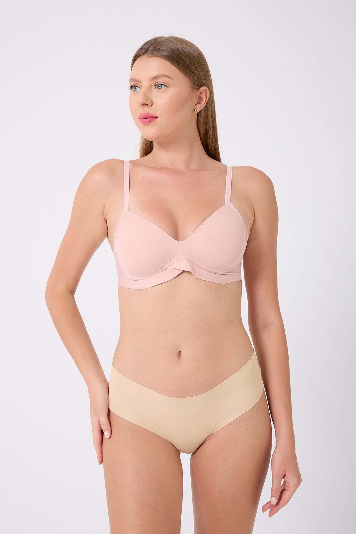 dikişsiz sütyen, gün boyu maksimum konfor ve doğal bir görünüm sunmak için tasarlanmıştır. Balenli yapısı göğüsleri nazikçe desteklerken, yumuşak ve esnek kumaşı vücuda mükemmel uyum sağlar. Dikişsiz formu sayesinde kıyafetlerin altında iz yapmadan pürüzsüz bir görünüm elde edilir.
