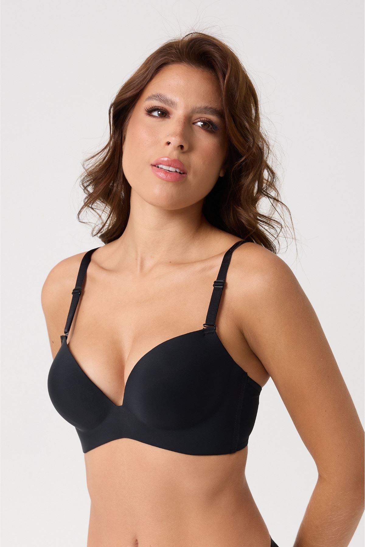 Leswear Sütyen Lazer Kesim Siyah Sütyen - Dolgulu Sütyen - Askısı Çıkarılabilir