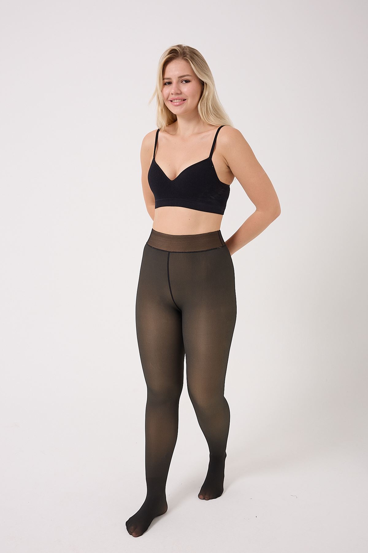 Peluş Tayt Polarlı Külotlu Çorap Tayt Peluş Siyah İçi Ten Renkli Sihirli Külotlu Kışlık Kalın İçi